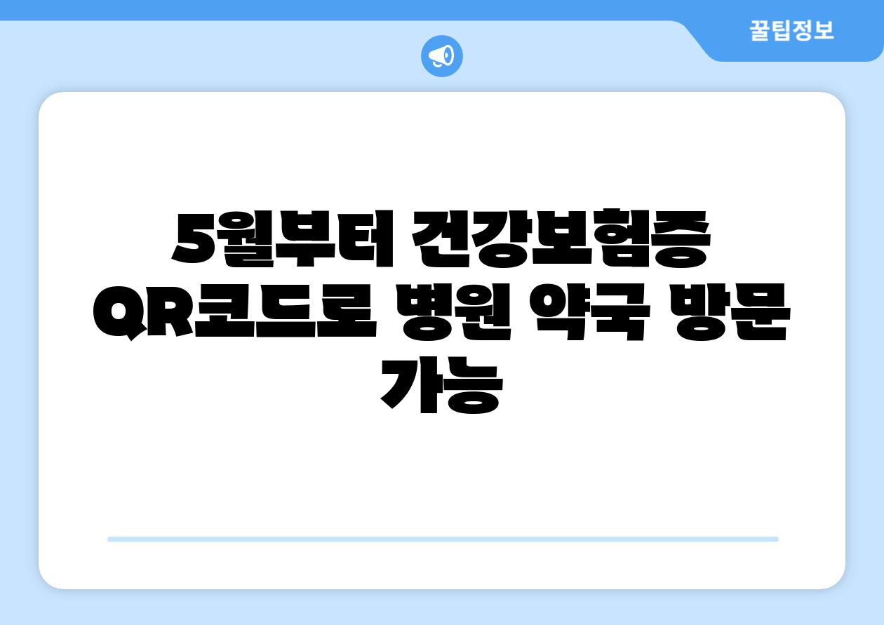 - 5월부터 병원과 약국에서 건강보험증을 직접 제시하지 않고도 QR코드를 통해 간편하게 본인 확인이 가능해졌습니다.