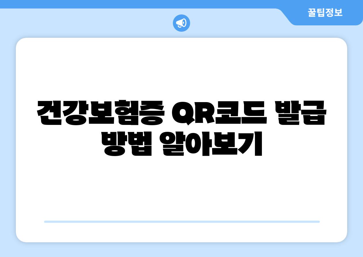 건강보험증 QR코드는 건강보험공단 홈페이지 또는 모바일 앱 ‘건강보험’을 통해 발급받을 수 있습니다. QR코드는 개인정보 보호를 위해 1회용으로 발급되며, 발급 후 1분 동안만 유효합니다.