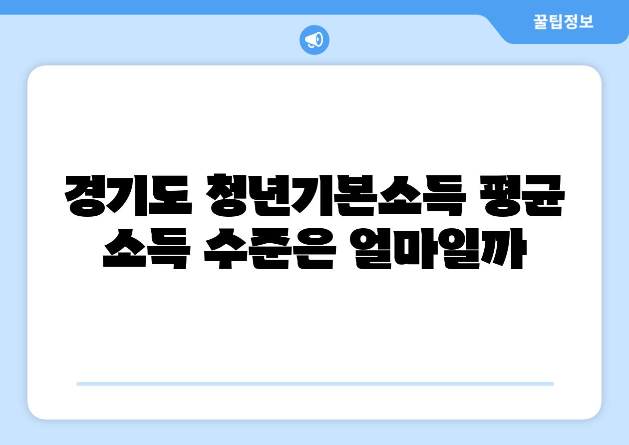 경기도 청년기본소득 평균 소득 | 2023년 현황 및 분석 | 청년 지원, 경기도 정책, 소득 수준