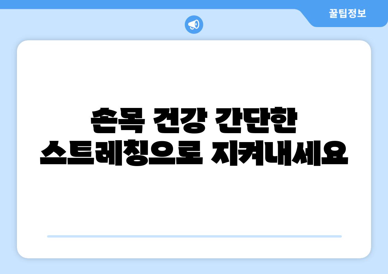 “손목 건강을 위해 매일 5분만 투자하여 간단한 스트레칭을 꾸준히 해보세요. 손목 건강을 지키고 통증 없는 삶을 누릴 수 있습니다.”