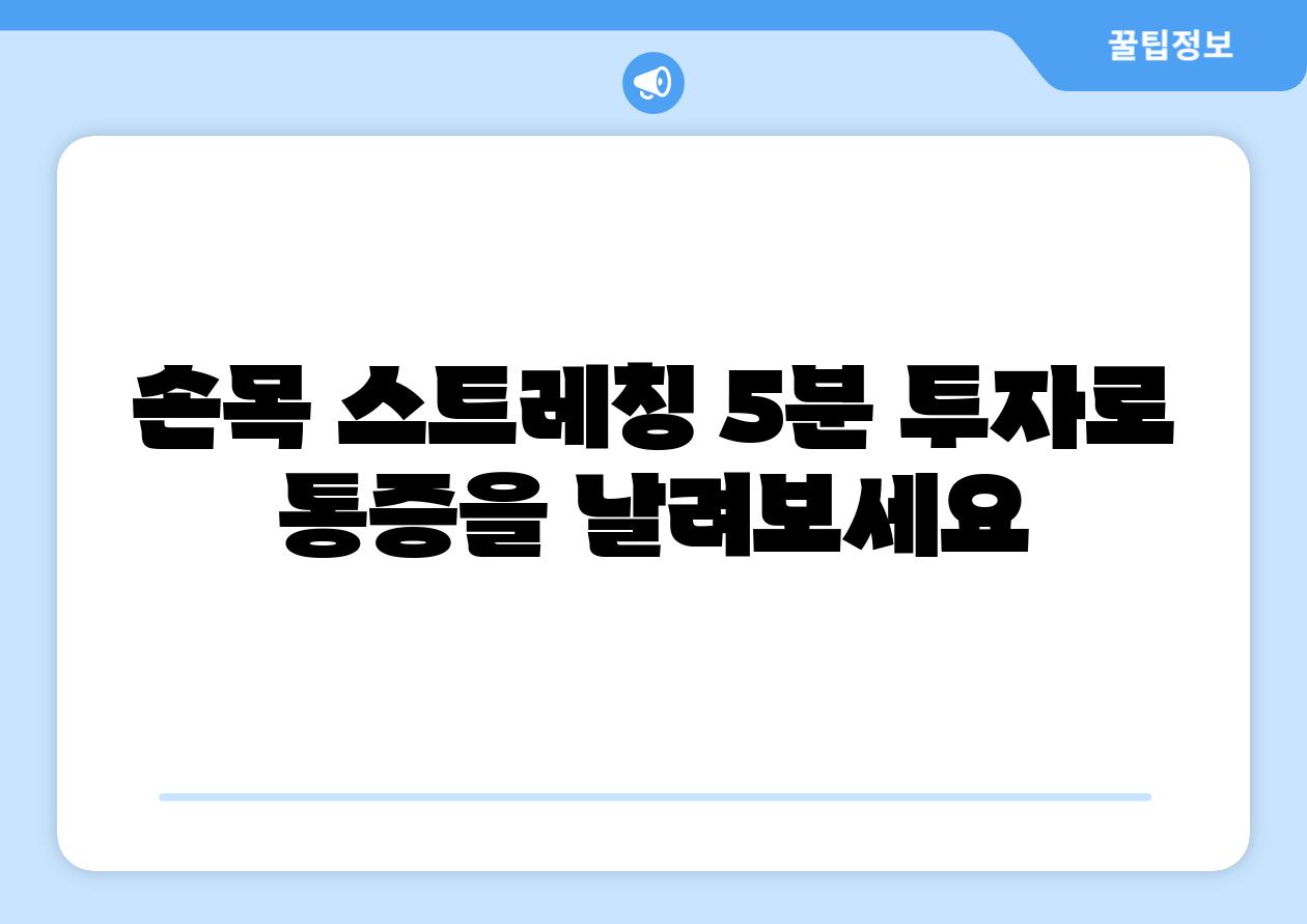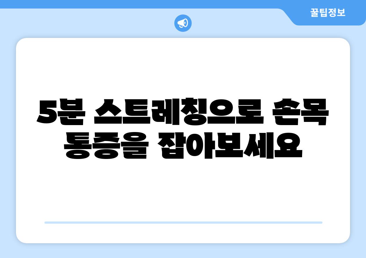 “5분 스트레칭은 손목 통증을 해결하는 데 효과적인 방법입니다. 꾸준히 스트레칭을 해주면 손목 건강을 유지하고 통증을 예방할 수 있습니다.”