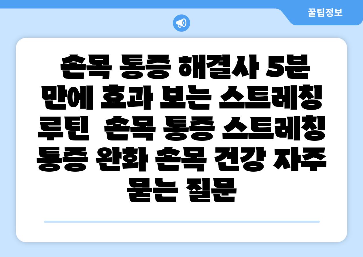 손목 통증 해결사| 5분 만에 효과 보는 스트레칭 루틴 | 손목 통증, 스트레칭, 통증 완화, 손목 건강 에 대해 자주 묻는 질문 TOP 5