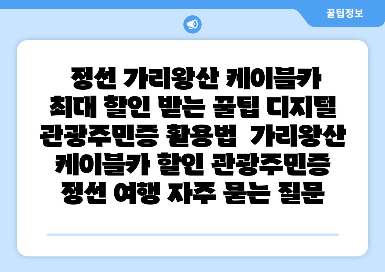 정선 가리왕산 케이블카 최대 할인 받는 꿀팁! 디지털 관광주민증 활용법 | 가리왕산, 케이블카 할인, 관광주민증, 정선 여행 에 대해 자주 묻는 질문 TOP 5