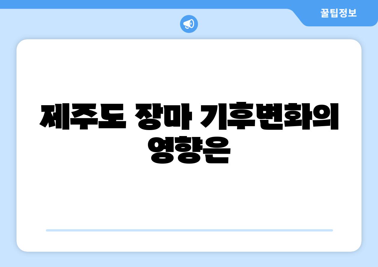 - 제주도 장마의 변화는 농업 생산성에 영향을 미치고 있습니다. 잦은 폭우로 인해 농작물 피해가 증가하고, 농업 생산량 감소로 이어질 수 있습니다.